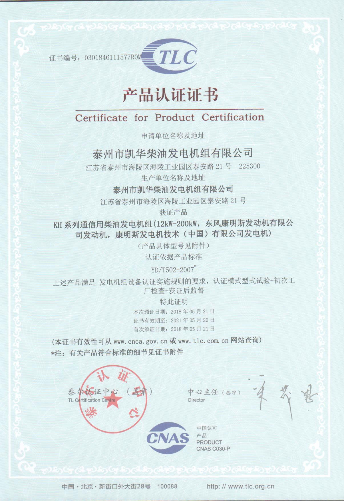 泰州市凱華柴油發電機組有限公司創建于2003年,是一家集柴油發電機組燃氣發電機組的研發、生產、銷售為一體的高新技術民營企業,公司座落于“漢唐古郡,淮海名區”,具有“鳳凰城”美稱的祥泰之州——江蘇省泰州市,地處中國經濟最發達的長三角經濟圈,水陸空立體交通,地理位置十分優越。公司目前注冊資本金11800萬元人民幣,生產基地占地六十畝,現有各類高素質員工一百多名,專業技術人員達46人,其中高級技術人員16人,年銷售額近6億元。